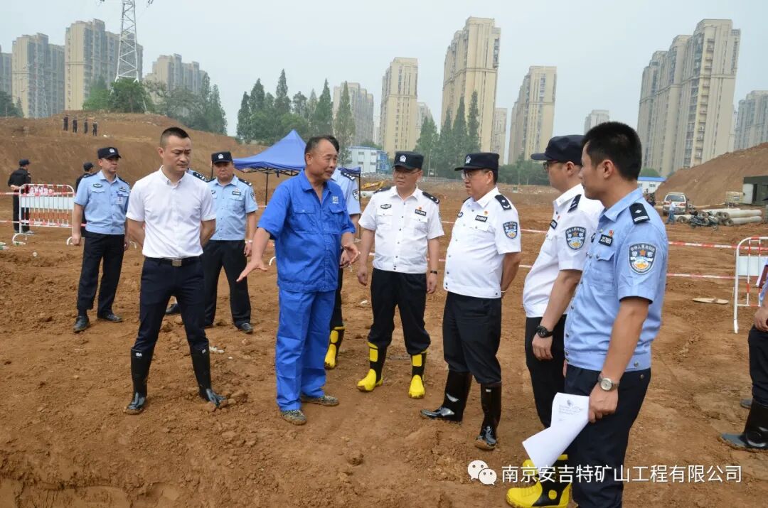 市公安局党委委员蒋虻芒在治安支队马群支队长和周向阳委员的陪同下,现场查看某工地废旧炮弹挖掘现场。 市公安局治安支队、江宁分局治安大队现场监督销毁作业。